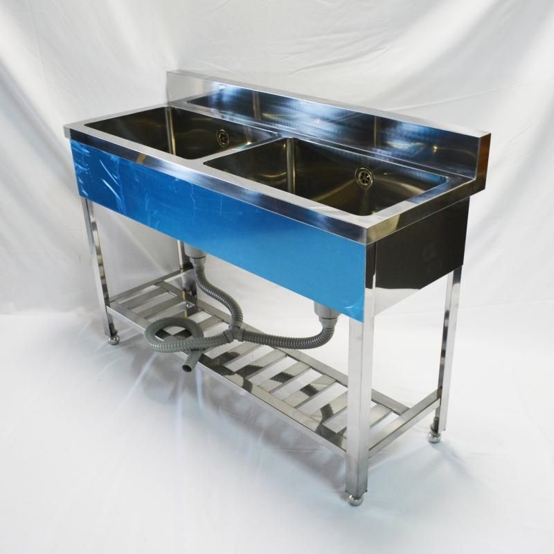 ステンレス 二槽シンク 流し台 W1200×D450×H800 バックガードあり CHA-2S1245 業務用 厨房 新品/越谷在庫