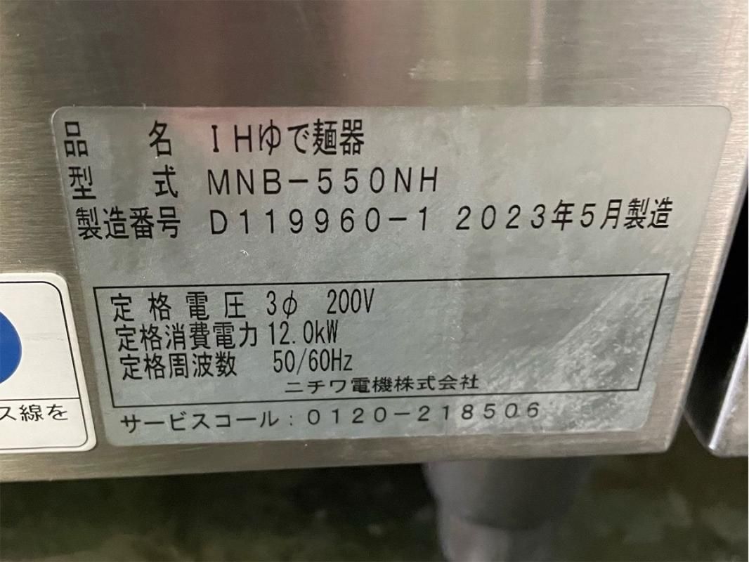 2023年製 ニチワ電機 電気ゆで麺器 IH MNB-550NH 三相200V W550×D600×H800 業務用 厨房 中古★94567
