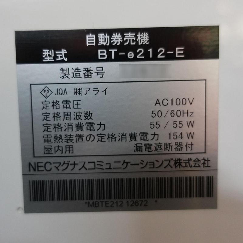 NEC 券売機 食券機 高額紙幣対応 BT-e212-E 最大100口座 W650×D300×H1600 業務用 厨房 中古 直接引取★94887