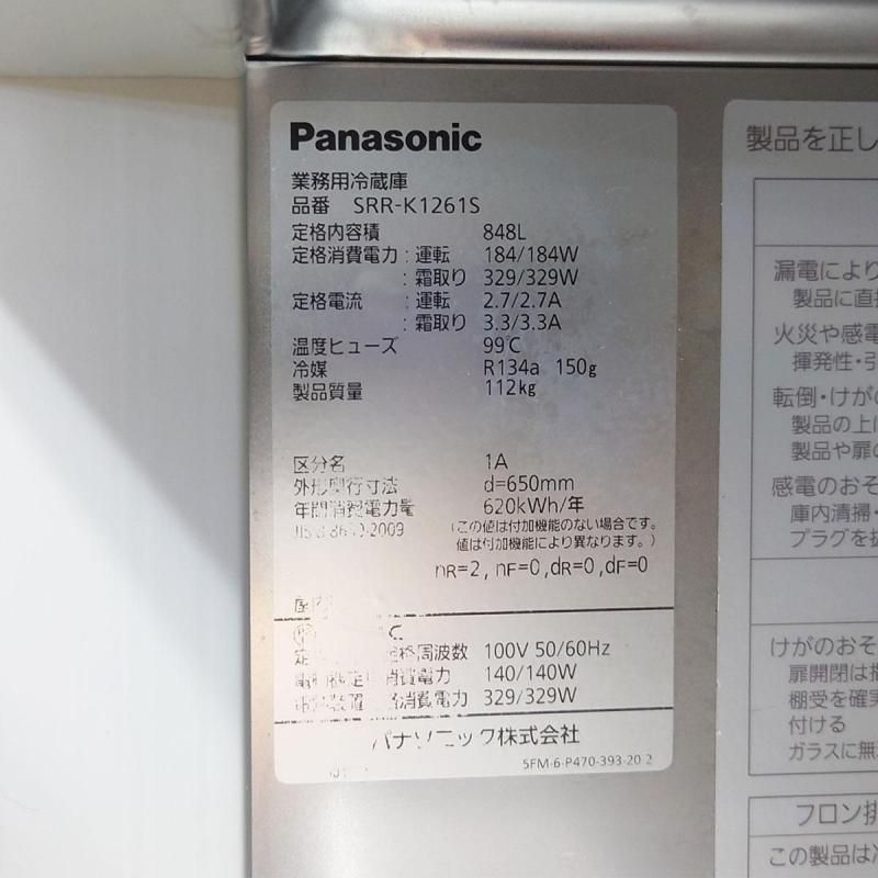 2018年製 パナソニック タテ型冷蔵庫 4ドア SRR-K1261S W1200×D650×H1950 業務用 厨房 中古 直接引取★94954