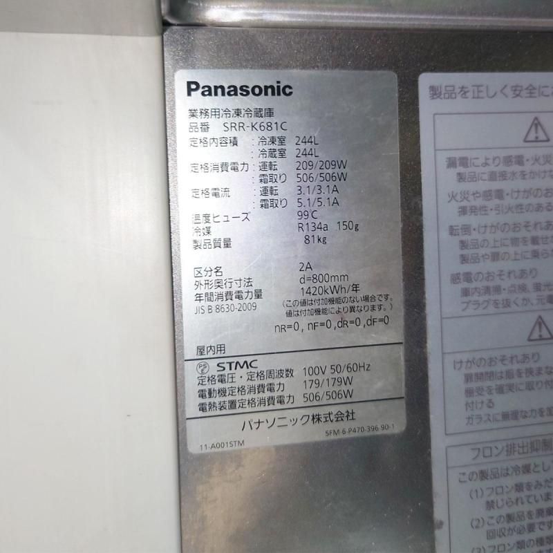 2019年製 パナソニック タテ型冷凍冷蔵庫 2ドア SRR‐K681C 左ヒンジ 左開き W615×D800×H1950 業務用 厨房 中古 直接引取★94832新入荷