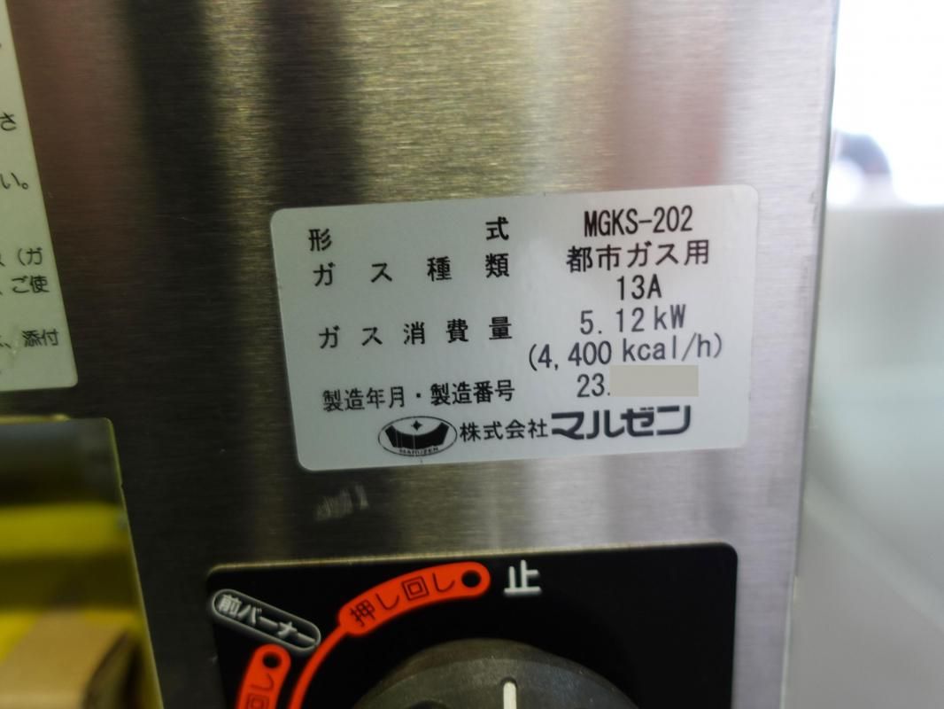 2023年製 マルゼン ガス下火式焼物器 MGKS-202 W580×D280×H258 都市ガス13A 業務用 厨房 中古★94932新入荷