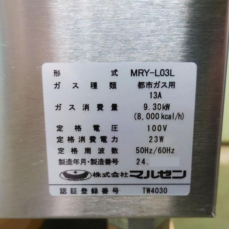 2024年製 マルゼン 自動ゆで麺器 リフト付 3テボ MRY-L03L W330×D700×H800 都市ガス13A 業務用 厨房 中古★95019