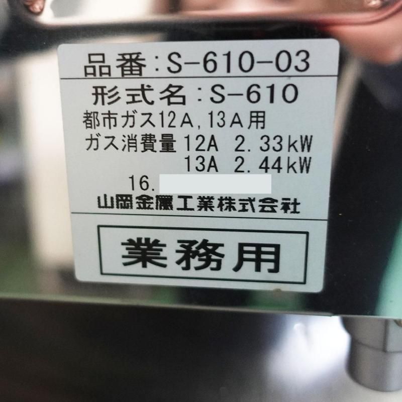 2016年製 山岡金属 ガス炭火焼物器 赤鬼 S-610 W629×D330×H259 都市ガス12・13A 業務用 厨房 未使用☆94339