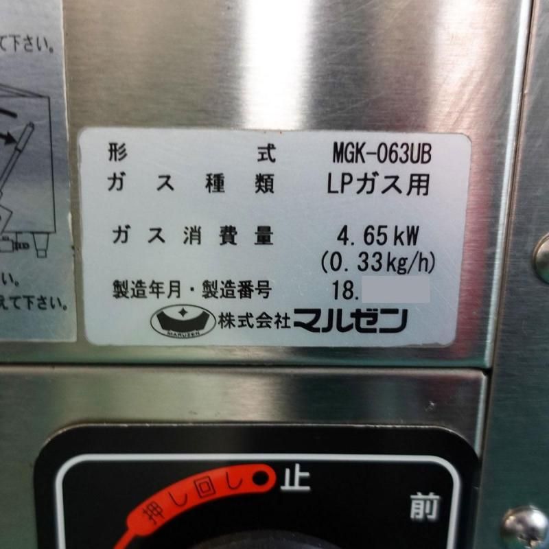 2018年製 マルゼン 上火式焼物器 MGK-063UB W610×D300×H420 プロパンガス LP 業務用 厨房 中古★94844